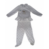 Pantalone con Piedini: Il pantalone coordinato è in un confortevole tessuto grigio melange, facile da abbinare. È dotato di piedini integrati che assicurano calore e praticità. I piedini presentano una fantasia a righe grigie e bianche, riprendendo il motivo del colletto per un completo coordinato e curato nei dettagli.